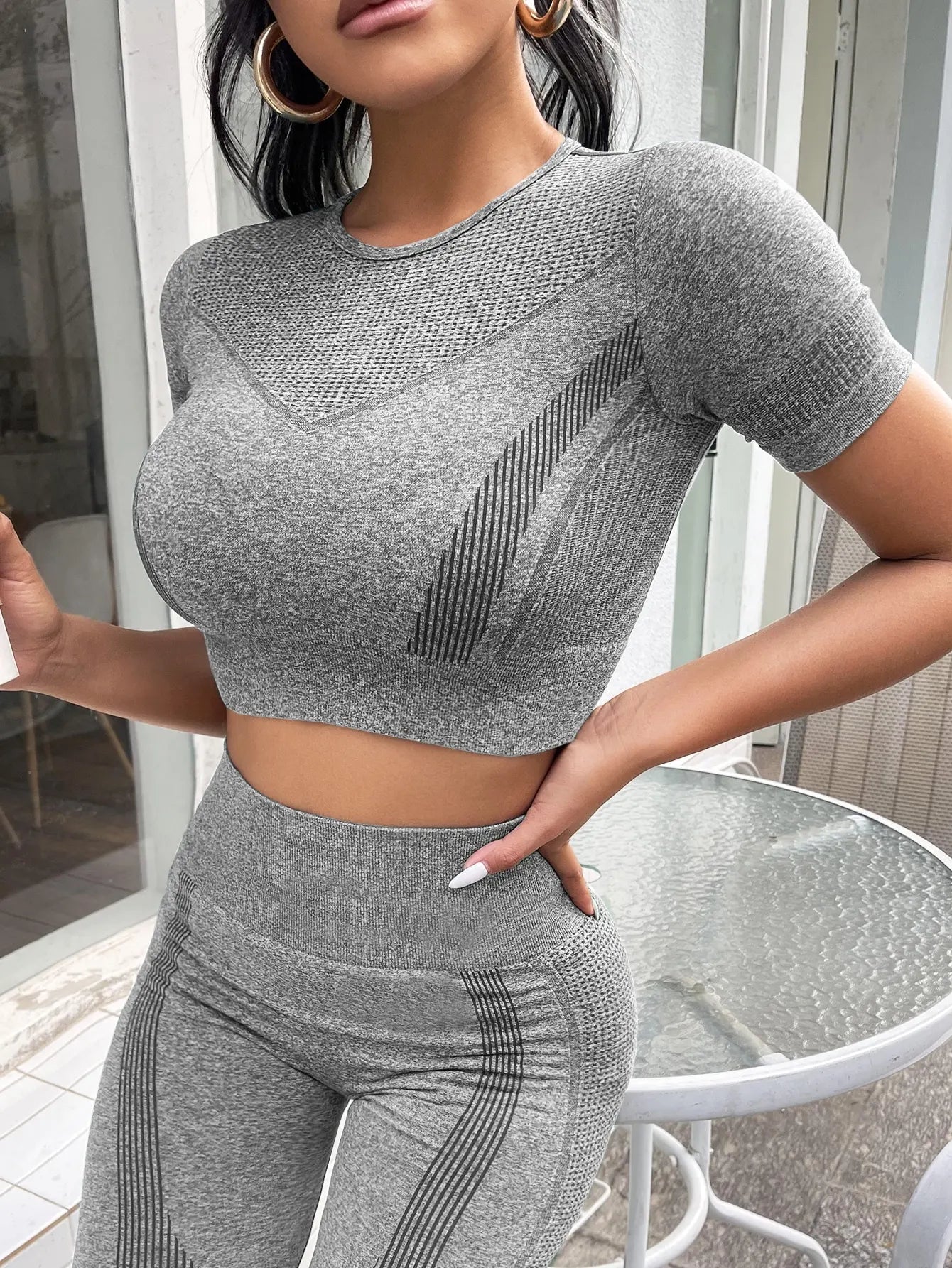 2-piece Set,Short-sleeved Top And High-waisted Tummy Control Long Pants Sportswear,Suitable For Outdoor Sport,Women's Sportswear